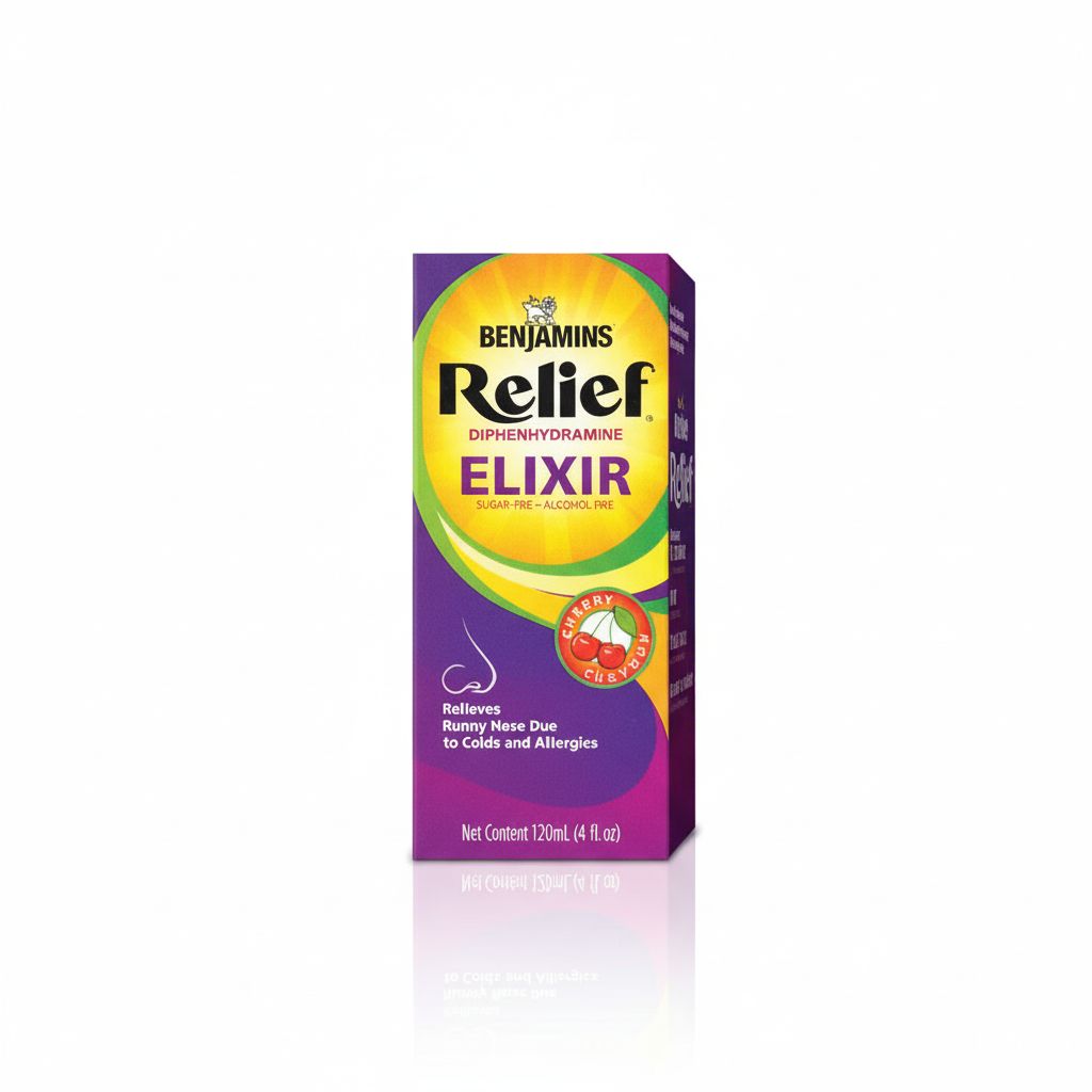 Benjamins Relief Diphenhydramine Elixir 120mL | Cherry Flavor | Allergy & Cold Relief