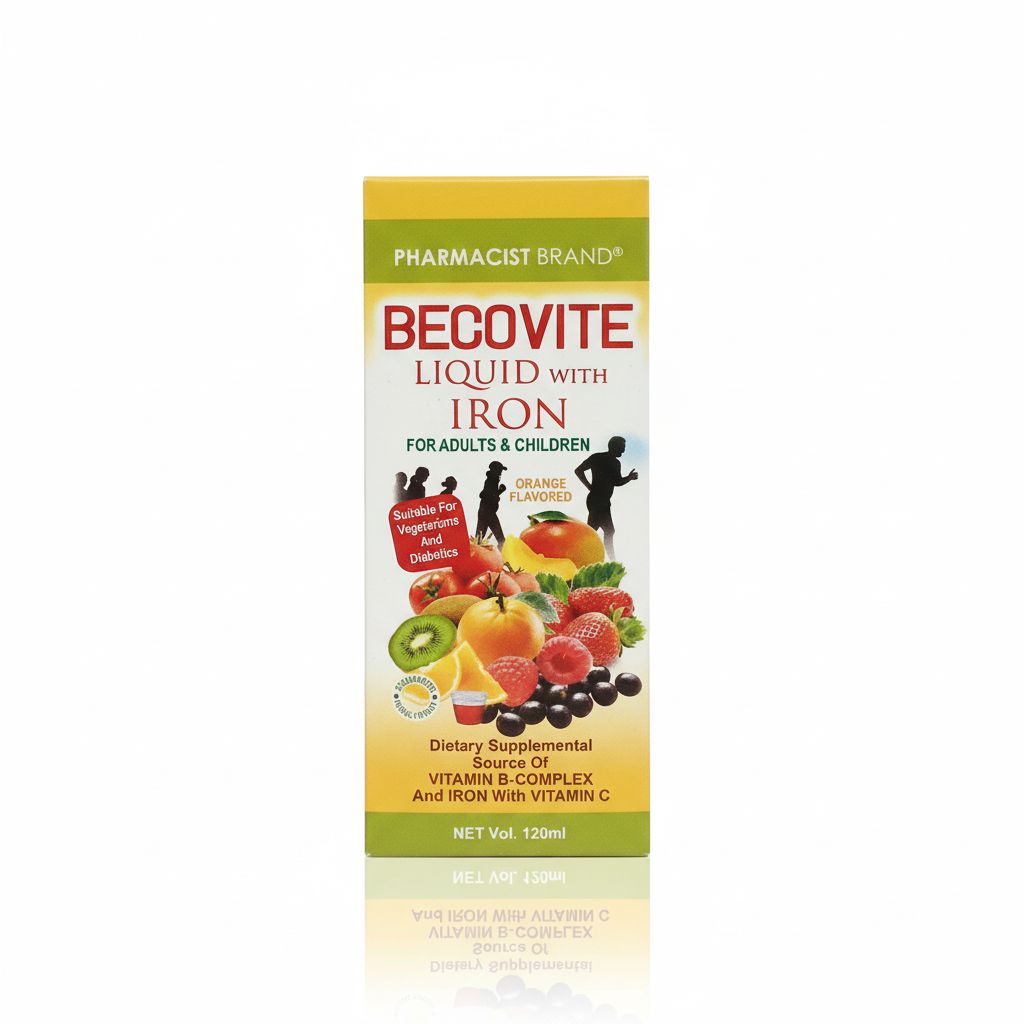 Pharmacist Brand Becovite Liquid with Iron 120mL | Vitamin B-Complex + Iron with Vitamin C | Orange Flavored | For Adults & Children