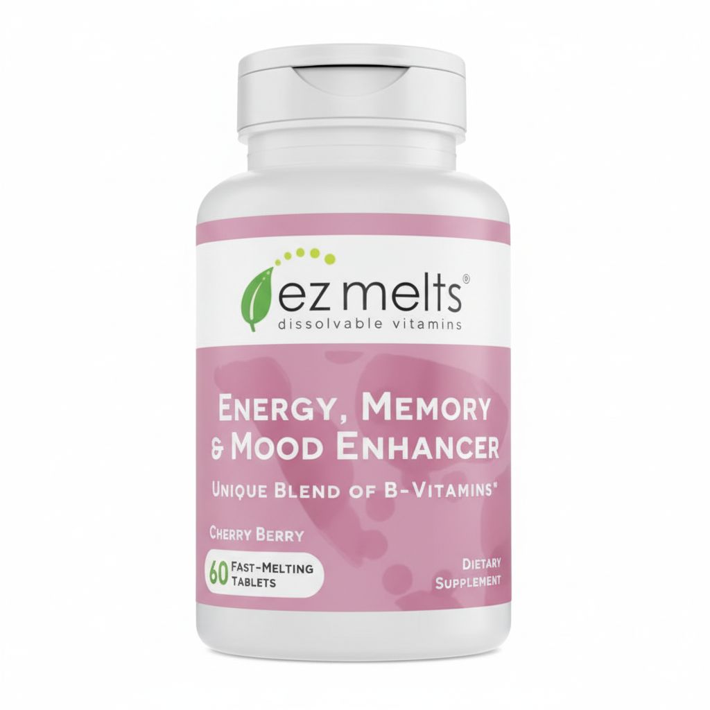 EZ Melts Energy, Memory & Mood Enhancer – Fast-Melting B-Vitamins – Cherry Berry – 60 Tablets