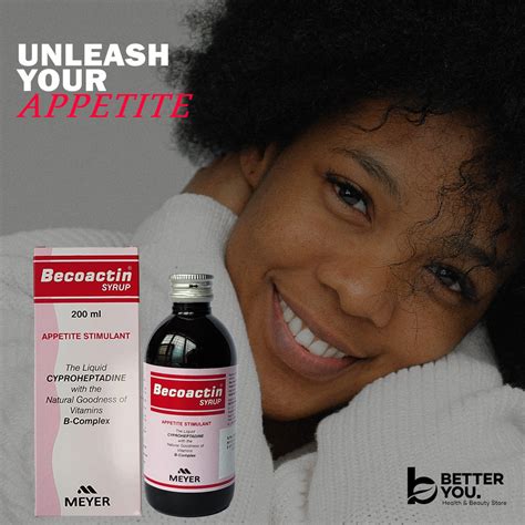Fruit-flavored syrup with Cyproheptadine and B vitamins to improve appetite, energy, and weight gain.