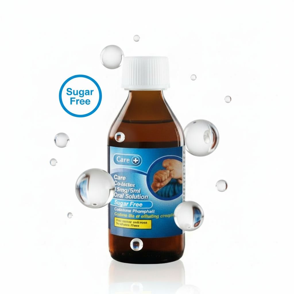 | Overview | Care+ Co-lactase Oral Solution contains codeine phosphate, a cough suppressant used to relieve dry cough. It acts on the cough center in the brain to reduce the urge to cough, and the liquid formulation allows for easy dosing and fast absorption. |
