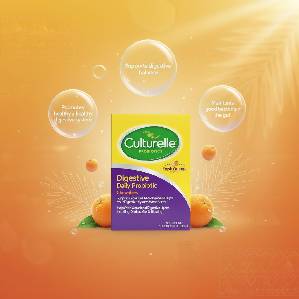 | Overview | A daily probiotic chewable designed to support digestive balance and overall gut wellness. It contains clinically proven probiotic strains to help ease digestion and features a fresh orange flavor for child-friendly, easy use. |