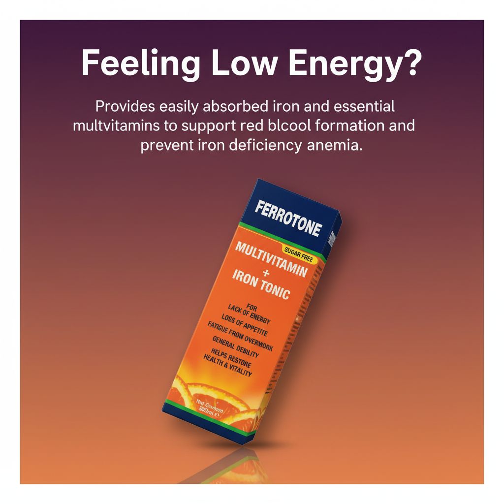 | Overview | A sugar-free multivitamin and iron tonic formulated to help restore energy and vitality. It supports the management of fatigue, weakness, and loss of appetite and is suitable for daily use. |
