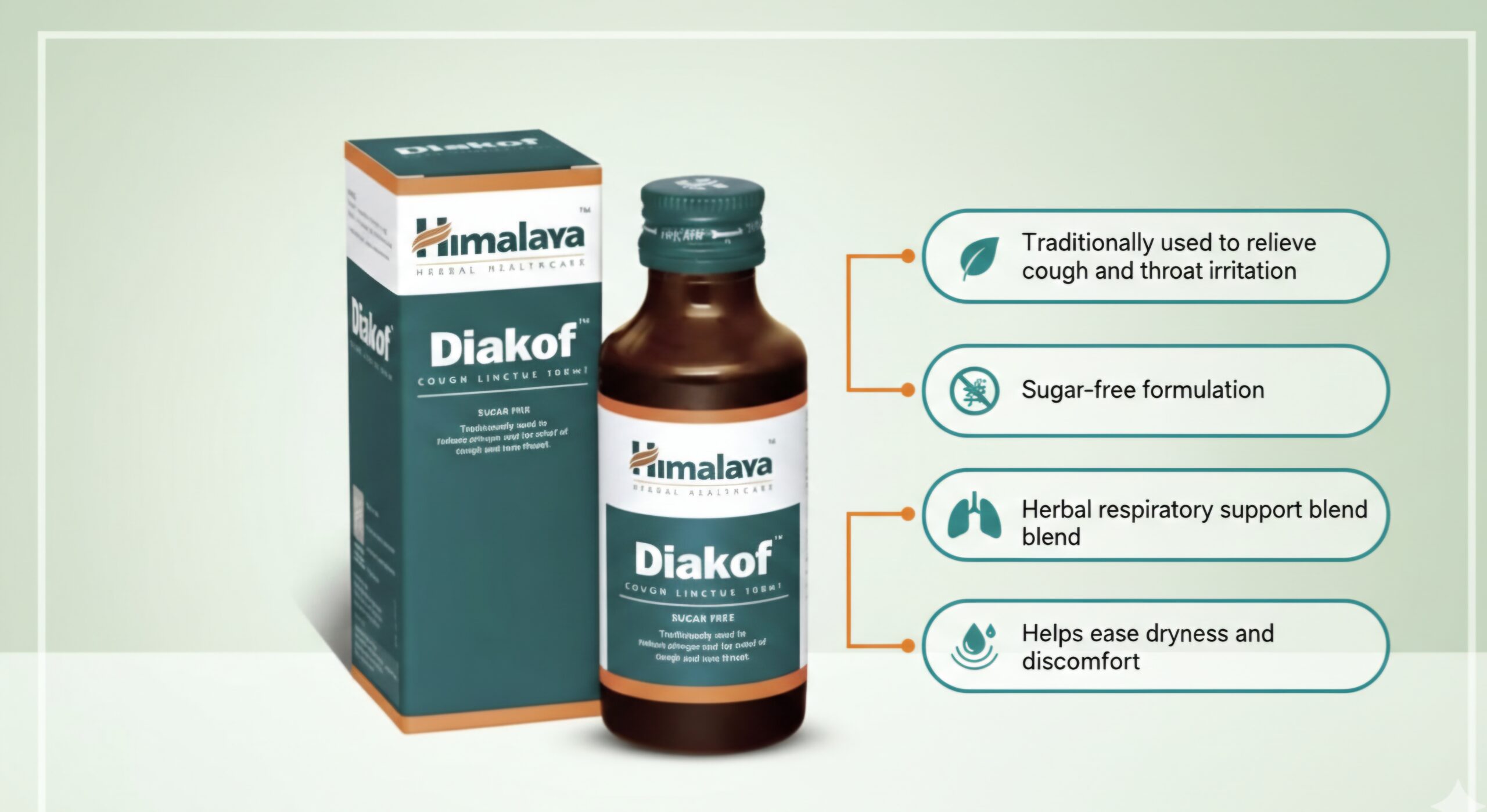 | Overview | A herbal cough syrup formulated to relieve both dry and productive cough. Its sugar‑free formula is ideal for diabetics or those on calorie-restricted diets and is traditionally used to support throat comfort and overall respiratory wellness. |