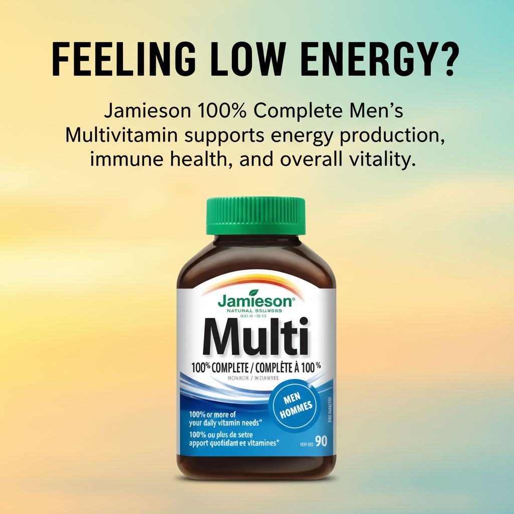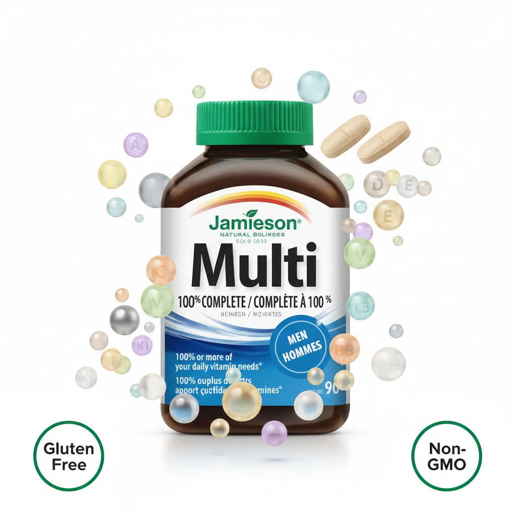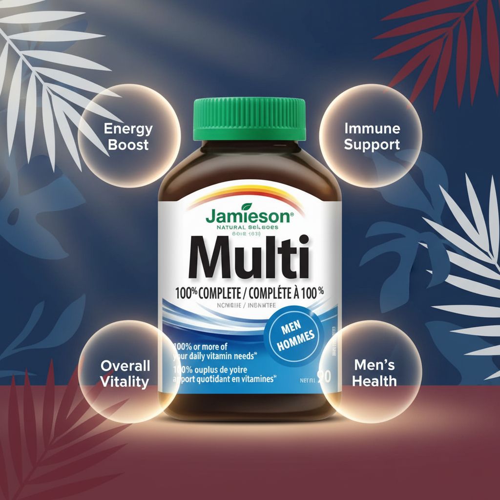 | Overview | Jamieson Multi 100% Complete for Men is a comprehensive multivitamin designed specifically for men. Each tablet delivers essential vitamins and minerals to meet daily nutritional requirements. Formulated to support energy, immunity, and overall health in men. |