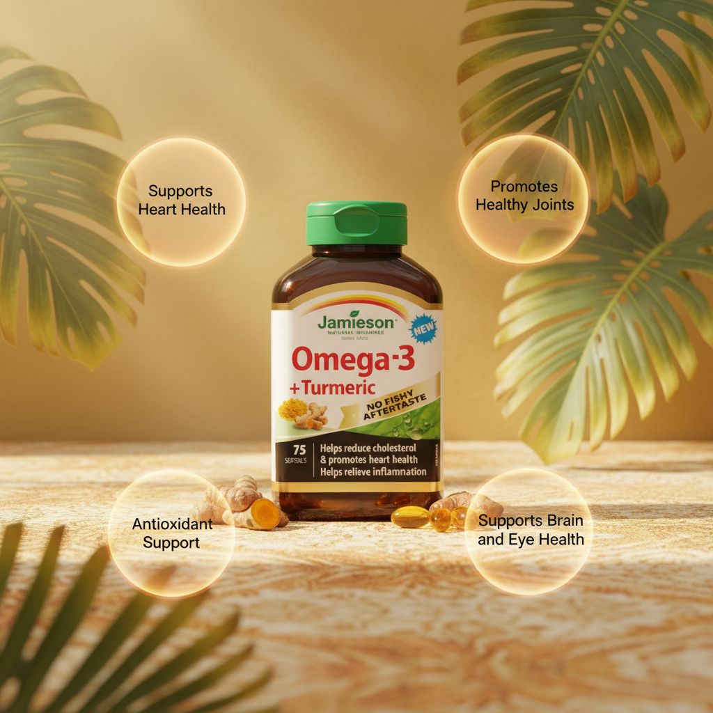 Overview A powerful blend of Omega-3 and turmeric designed to support heart and joint health, providing natural anti-inflammatory benefits with no fishy aftertaste.