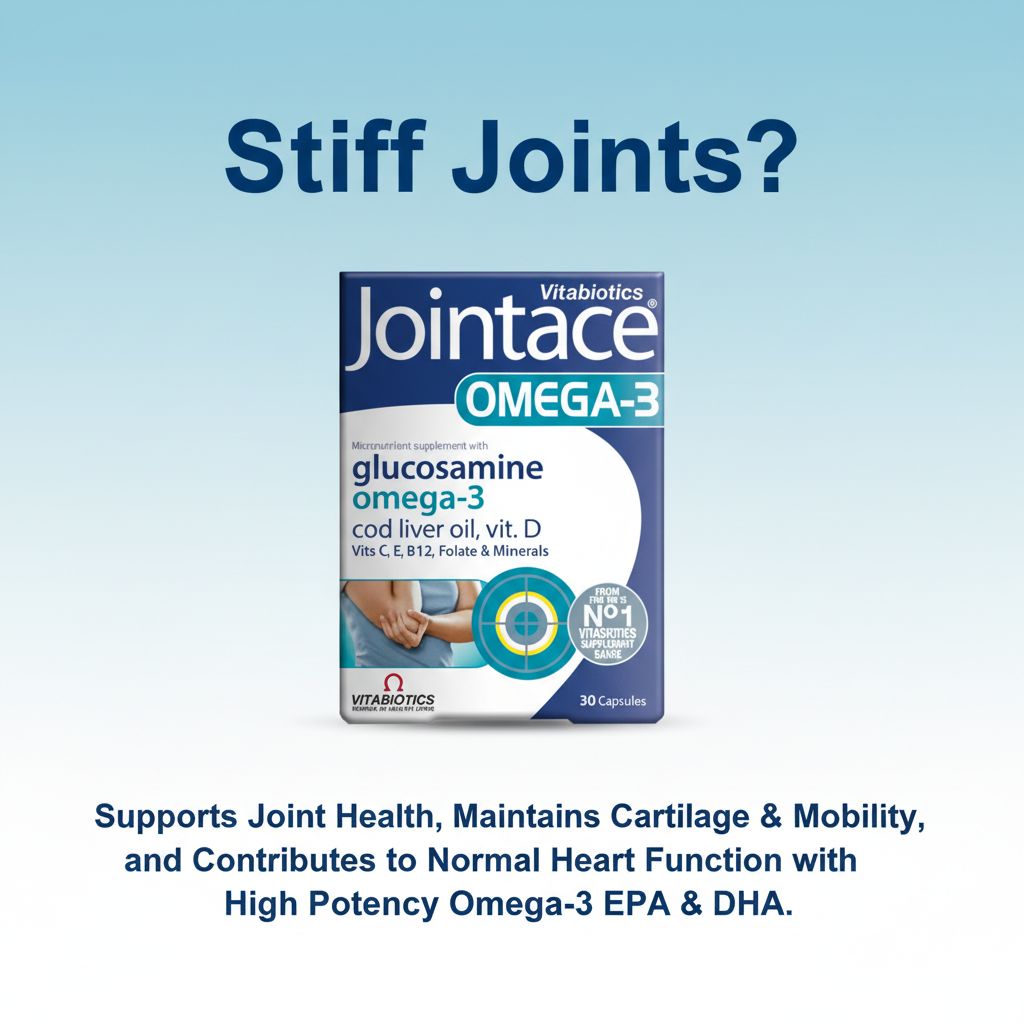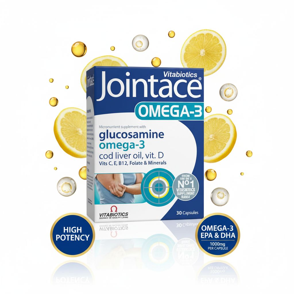 | Overview | Jointace Omega-3 is a micronutrient supplement formulated to support joints and mobility by combining glucosamine with omega-3 fish oils. The formula includes cod liver oil and omega-3 fish oil, along with vitamins C, E, D, B12, folate, and essential minerals to support joint, bone, and connective tissue health. Designed for regular daily intake without excessive levels, making it suitable for long-term use. |
