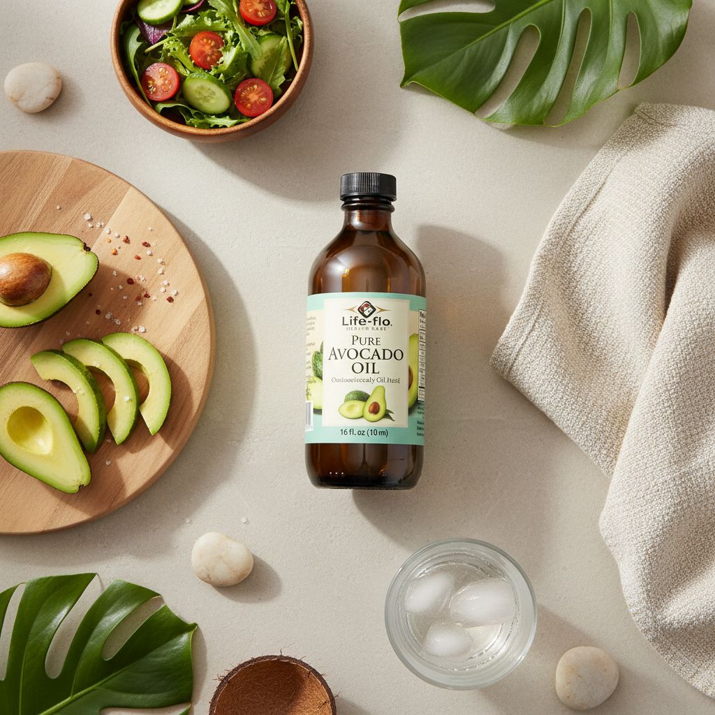 | Overview | Life-flo Pure Avocado Oil is a cold-pressed oil designed for topical skin and hair care. Its nourishing properties help improve skin softness and hydration, and it is packaged in a 16 fl oz (approximately 473 mL) amber bottle to help protect the oil from light exposure. |