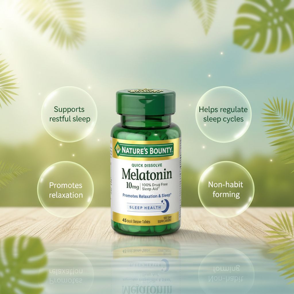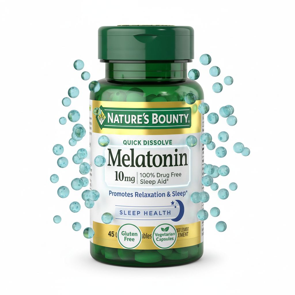| Overview | Nature’s Bounty Melatonin 10 mg provides a potent dose of melatonin to help support restful sleep. The quick-dissolve tablets melt in your mouth without water, making them ideal for fast, convenient bedtime use when quick action is desired. |