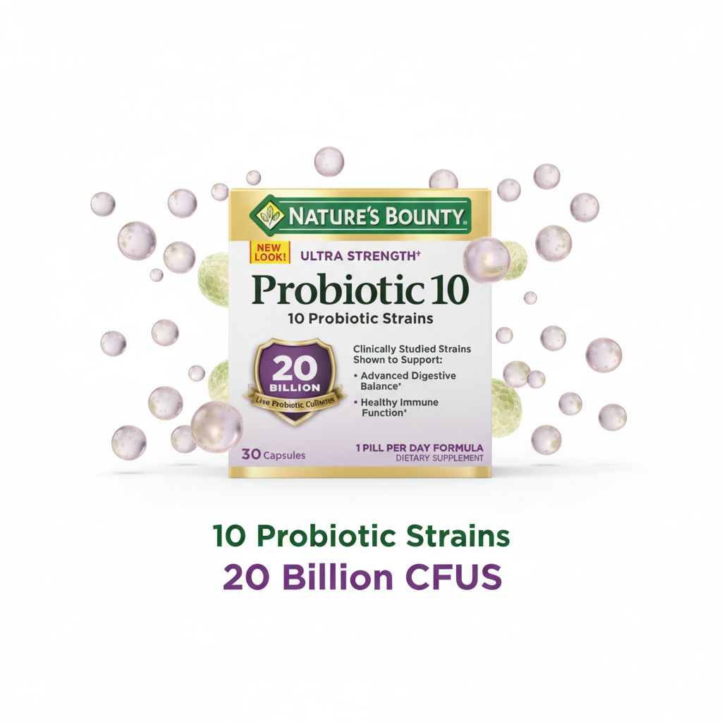 | Overview | Probiotic 10 Ultra Strength provides a potent blend of beneficial bacteria to support digestive and immune health. Each capsule delivers 20 billion CFUs from 10 probiotic strains, making it suitable for consistent daily use to help maintain gut balance and overall wellness. |