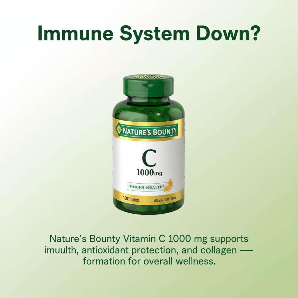 | Overview | Nature’s Bounty Vitamin C 1000 mg delivers high-strength vitamin C to support immune function and provide powerful antioxidant protection. Each caplet offers a convenient daily dose ideal for maintaining overall wellness. |