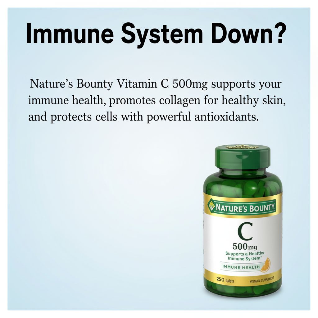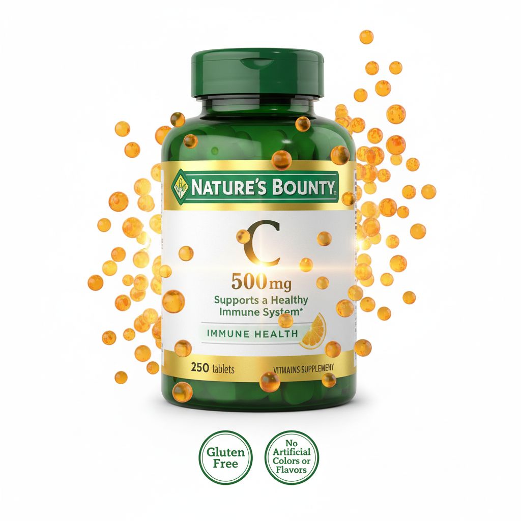 | Overview | Nature’s Bounty Vitamin C 500 mg Tablets deliver essential antioxidant support to help maintain the body’s natural immune defenses. Each tablet provides 500 mg of vitamin C and is formulated for quality, purity, and reliable long-term daily use. |