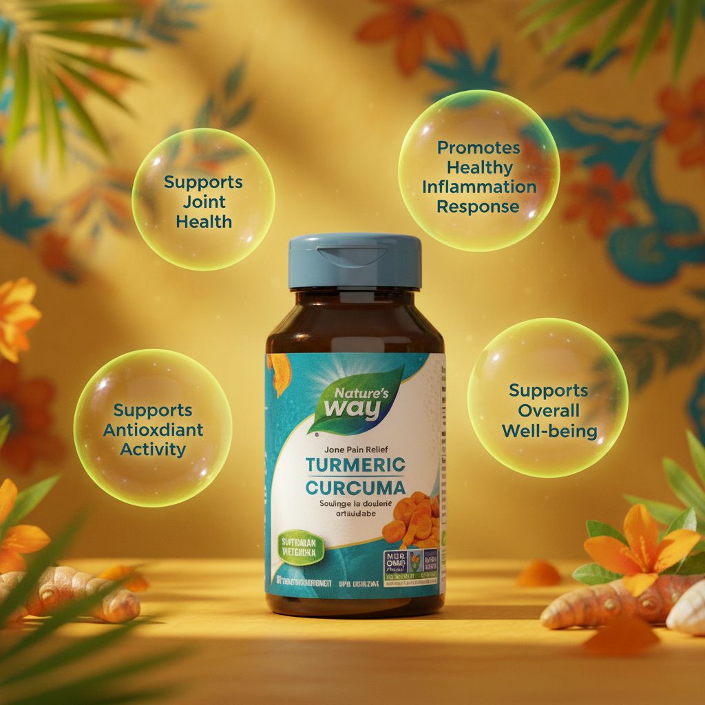 | Overview | Nature’s Way Turmeric Curcuma is formulated for joint pain relief using trusted herbal traditions. Each capsule delivers turmeric root to support joint and muscle comfort. Crafted with quality-tested botanical ingredients. |