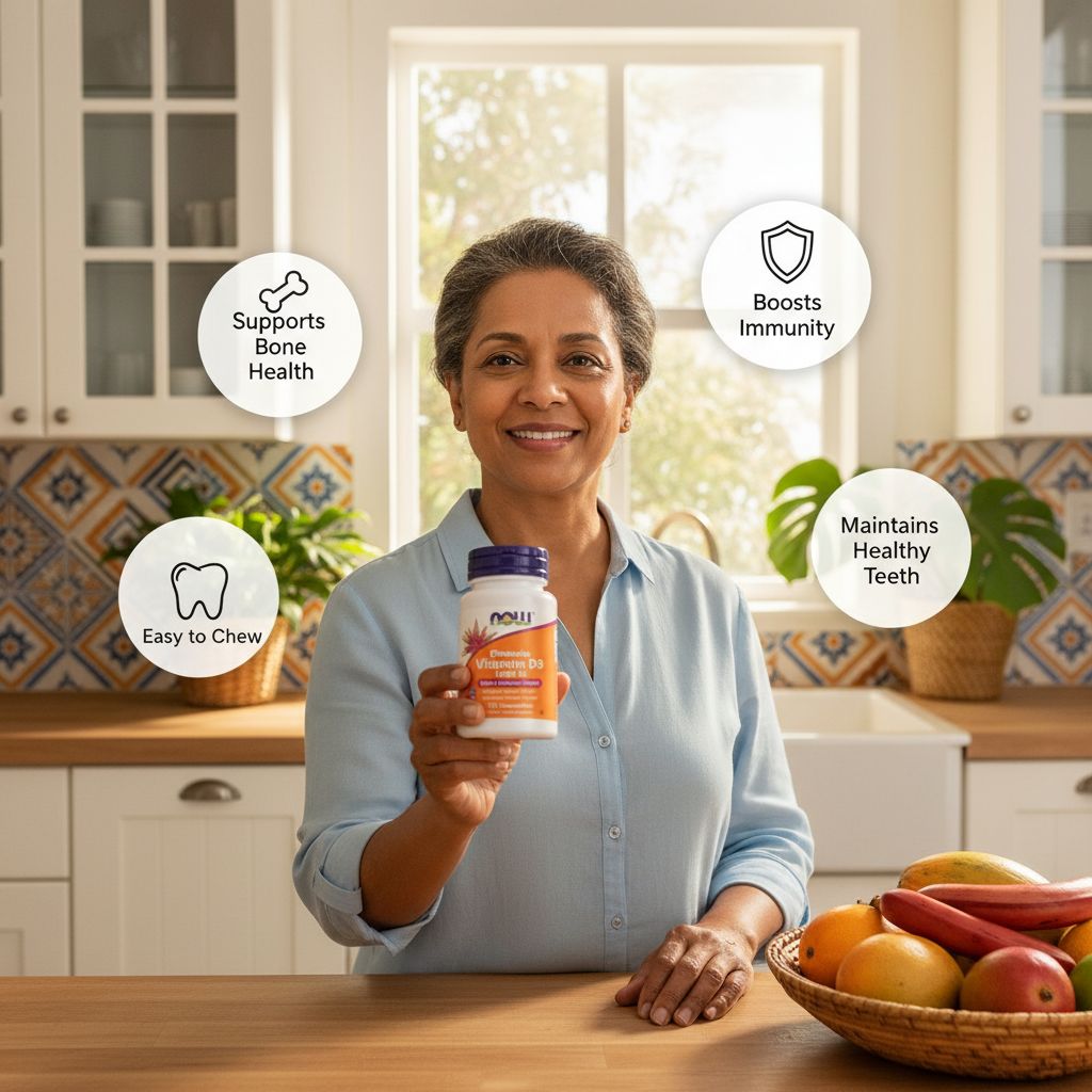 | Who Should Use | Individuals seeking daily bone and immune system support, people with limited sun exposure or low dietary vitamin D intake, adults and teens who prefer chewable supplements, and those looking to maintain healthy teeth and muscle function. |