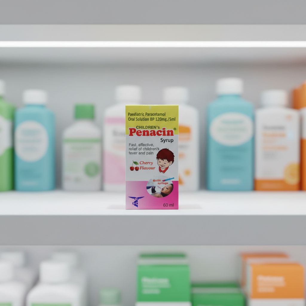 | Overview | Penacin Syrup contains paracetamol (acetaminophen) to relieve fever and mild to moderate pain in children. The fast-acting liquid formula helps reduce discomfort from cold, flu, or common childhood symptoms. Its pleasant cherry flavor makes dosing easier for kids. |