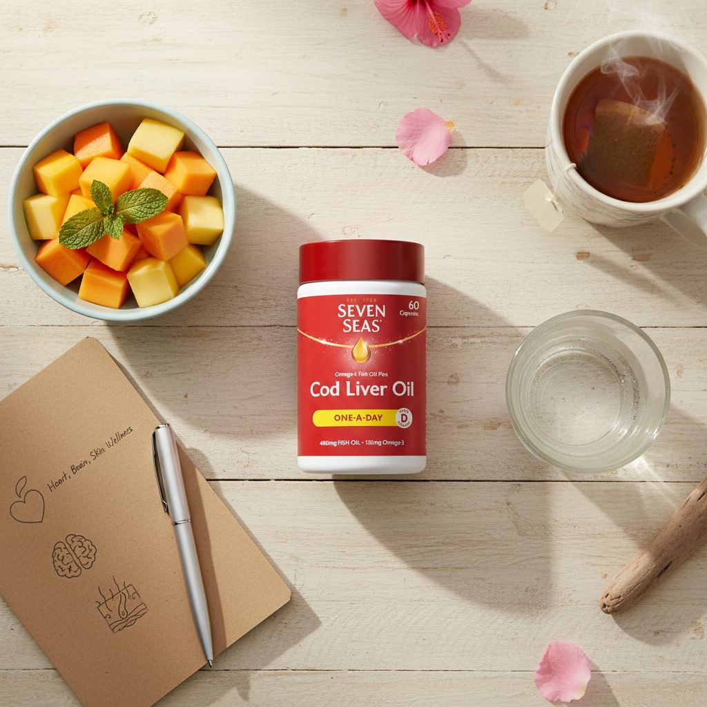 | Overview | Seven Seas Cod Liver Oil capsules combine Omega‑3 fish oil with Vitamin D. Each capsule delivers a balanced dose for everyday health maintenance and is produced by Seven Seas, a brand with decades of nutritional expertise. |