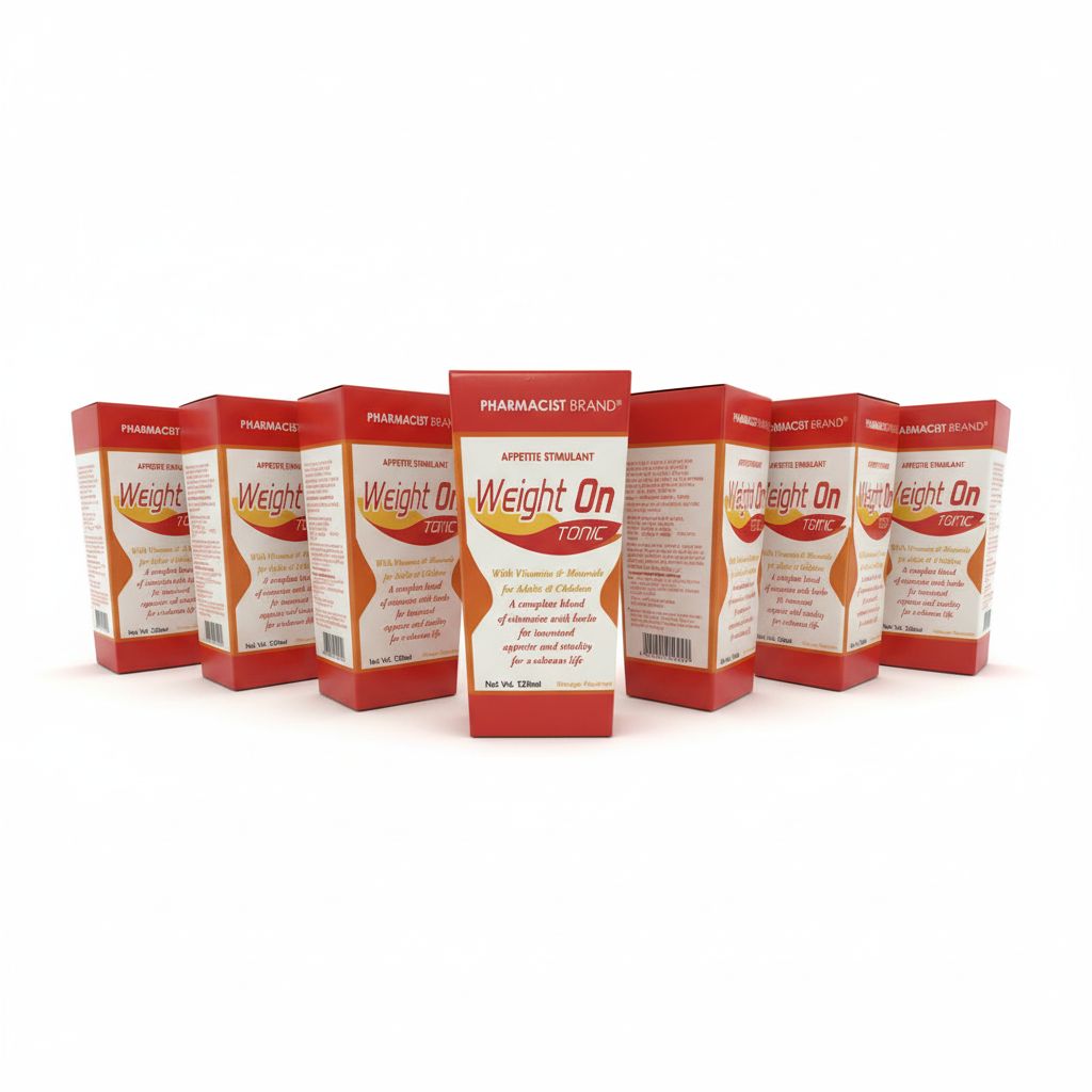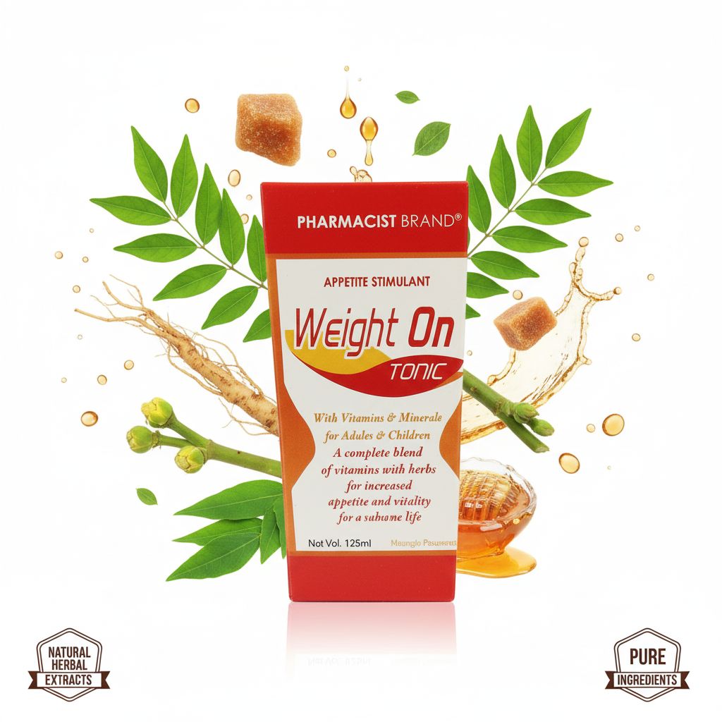 | Overview | Weight On Tonic is a complete appetite stimulant enriched with vitamins, minerals, and herbs. It is designed to help improve appetite, support nutritional intake, and is ideal for individuals with reduced appetite or increased nutritional needs. |