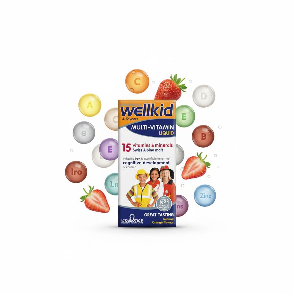 | Overview | Wellkid Multi-Vitamin Liquid is a balanced nutritional formula designed specifically for children aged 4 to 12 years. It contains a carefully selected range of vitamins and minerals to support overall health, growth, and learning, and features a natural orange flavour with Swiss Alpine Malt, making it gentle on young stomachs and enjoyable to take. |