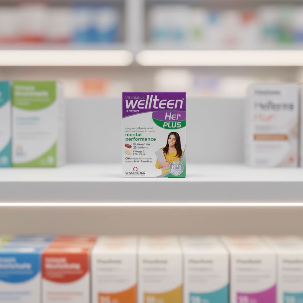 Supports mental performance, vitality, and overall wellness; includes Wellteen Her multivitamin plus Omega-3 EPA & DHA for enhanced daily support; tailored to meet the nutritional demands of exams, sports, and busy lifestyles during the growth years.